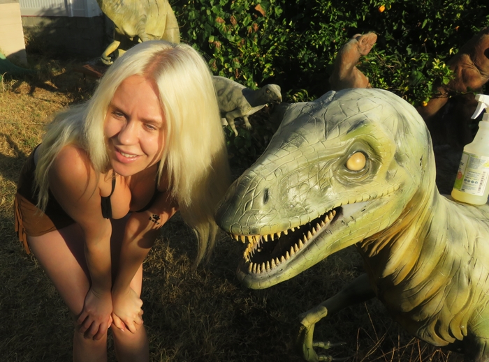Everyone loves getting their pictures taken with these dinosaur statues, including super-heroes! I never know who may be stopping by for a visit.
