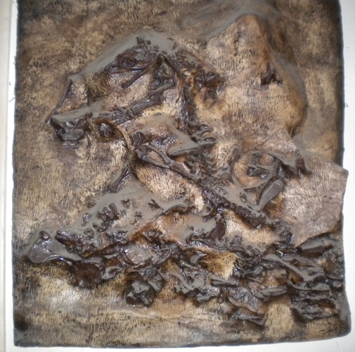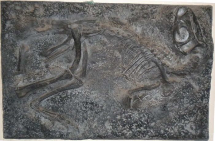 Skeleton (left) of the primitive synapsid reptiles Aerosaurus, which lived during the Permian period, cast from Valley Anatomical Preparations, Canoga Park, CA.