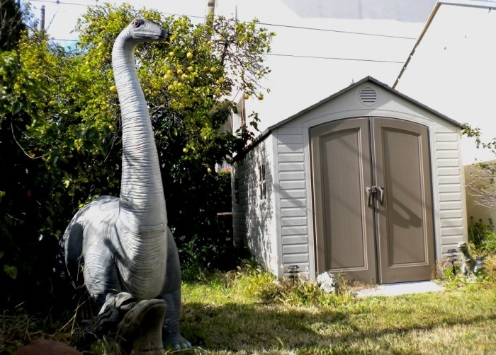 “Boris the Brontosaurus” (as it’s called in catalogs), big statue from Design Toscano, Elk Grove Village, IL.