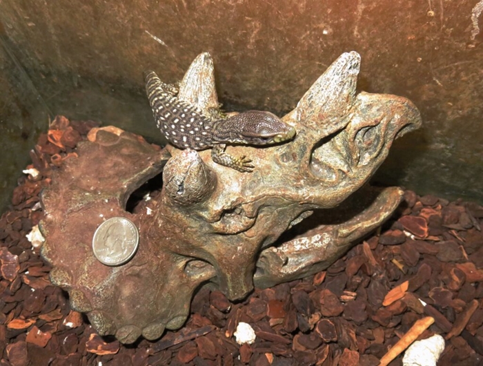 Dinosaur skulls for the aquarium and terrarium, Exotic Environments Reptile Cafe series, from Blue Ribbon/Pet Products (2012).