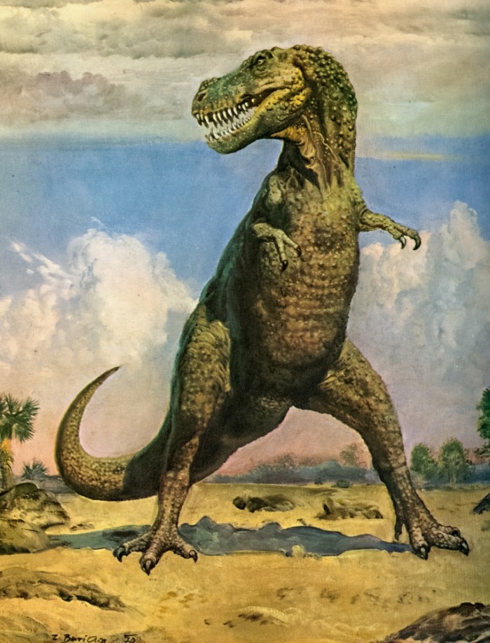 The Tarbosaurus figure was based upon this painting of that giant carnivorous dinosaur by Zdenek Burian.