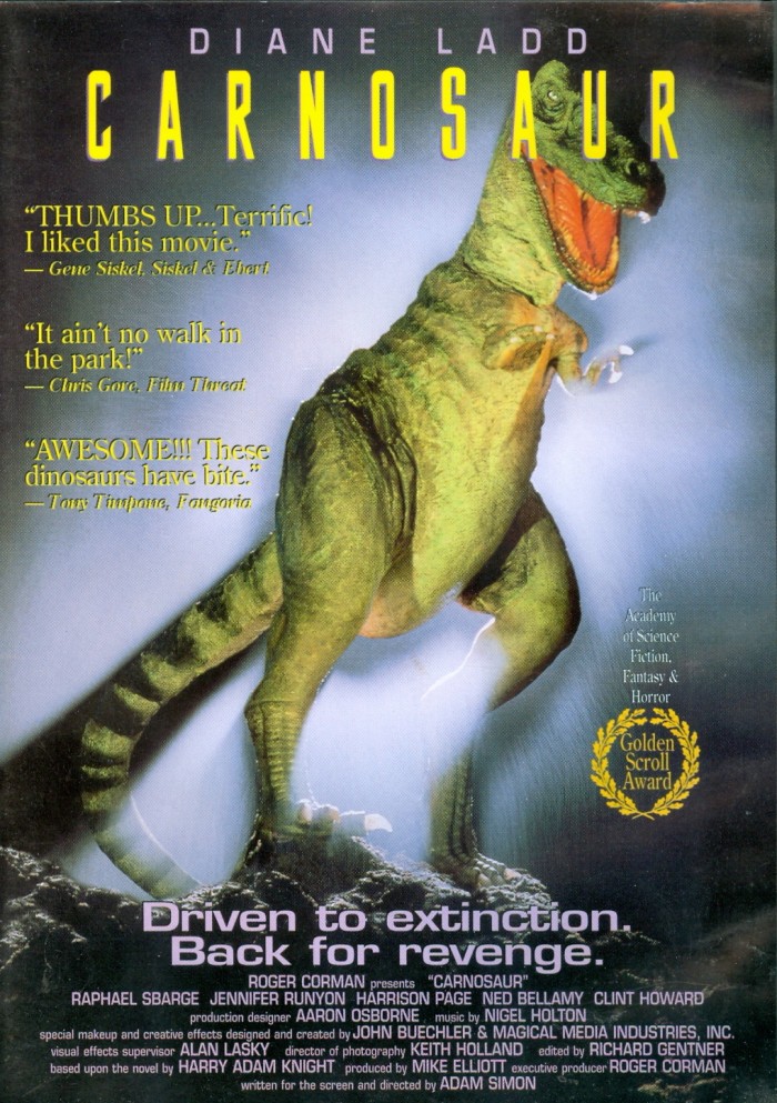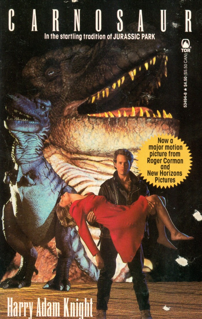 Some collectibles from the 1993 movie Carnosaur — the first motion picture for which Yours Truly received an on-screen credit (for “Dinosaur Consultant”). It was based on a novel written by Harry Adam Knight.