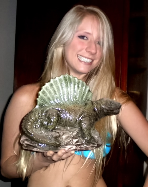 Ceramic Dimetrodon — one of a set of such figures — bought at a Burbank, CA tropical fish store during the 1980s.