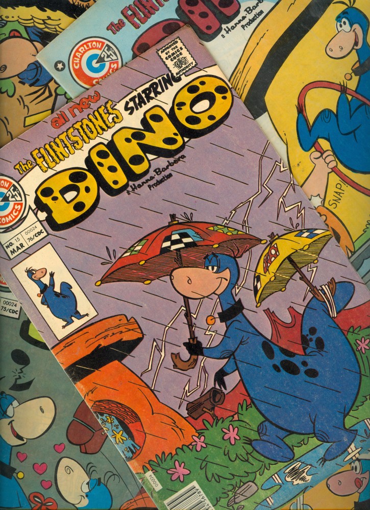 The character of “Dino,” Fred Flintstone’s pet dinosaur, became popular in his own right, inspiring various licensed merchandised items including toys. During the mid-1970s, the character even was awarded his own comic book series, issued by Charlton Publications. Among fans of The Flintstones TV series, these magazines are quite collectible.