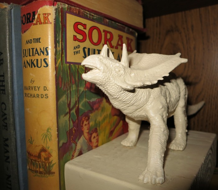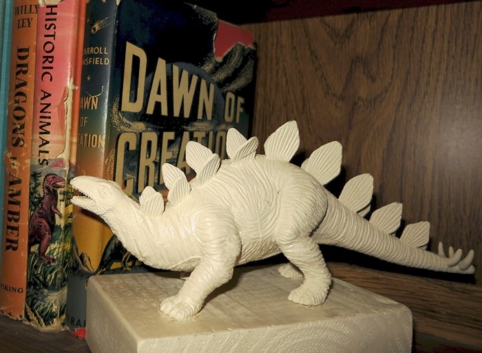 Dinosaur bookends for supporting books about things prehistoric.