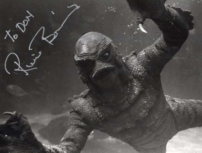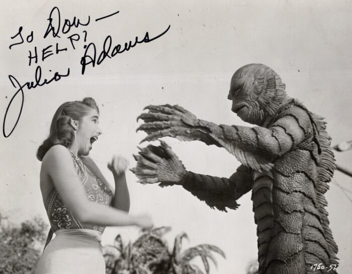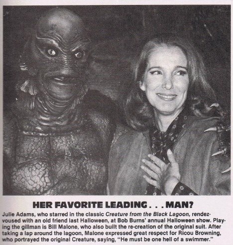 In 1982, Bob Burns asked me to write the script for his annual Halloween Show, that year’s theme being Creature from the Black Lagoon. A highlight of the event was the unexpected visit by actress Julie Adams, who starred in that film.
