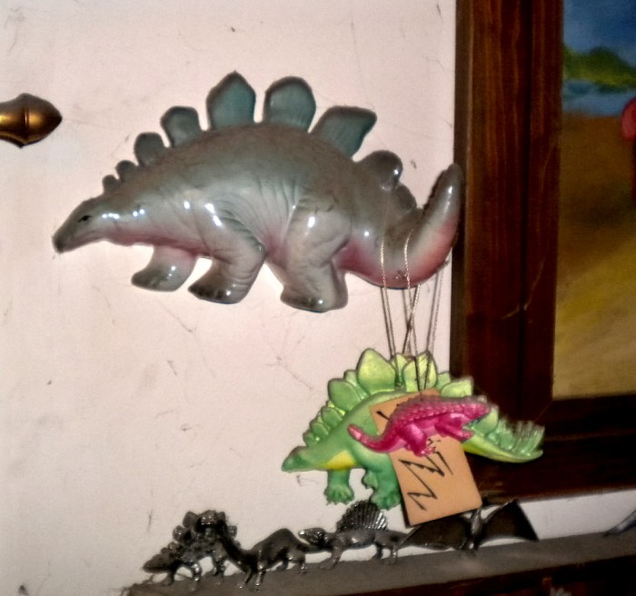 Ceramic “Dinosaur Hooks” — for hanging other dinosaur items — made by Clay Art of San Francisco.