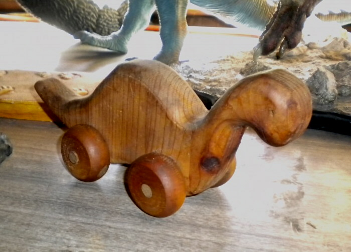 Great for massages, a wooden sauropod dinosaur on rollers, especially good for using after moving around heavy dinosaur collectibles.