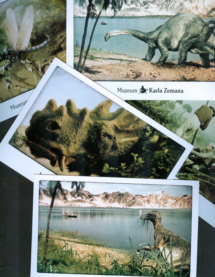 Montage of postcards based upon Karel Zeman’s 1955 Czech movie Journey to the Beginning of Time.
