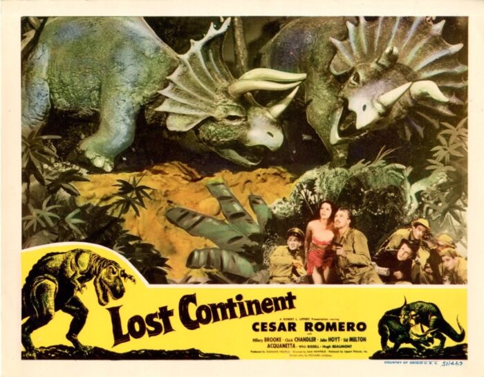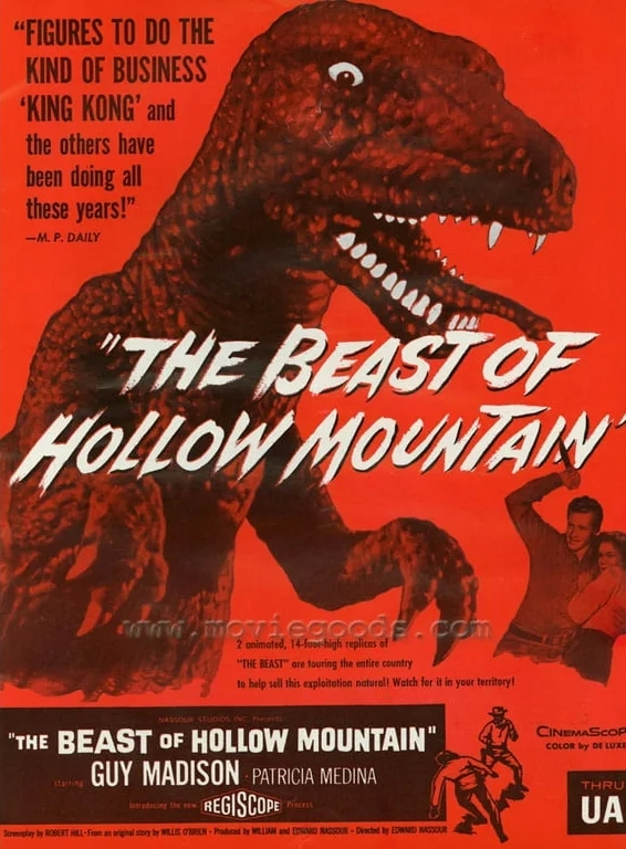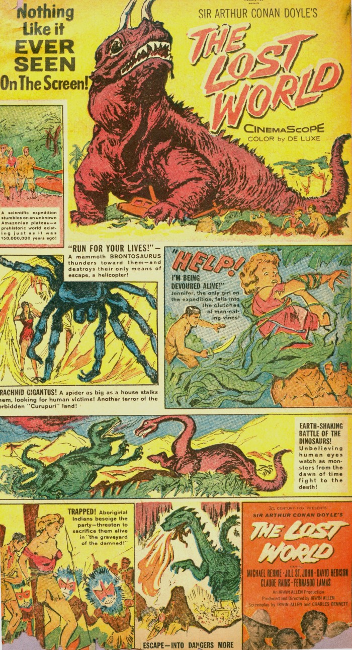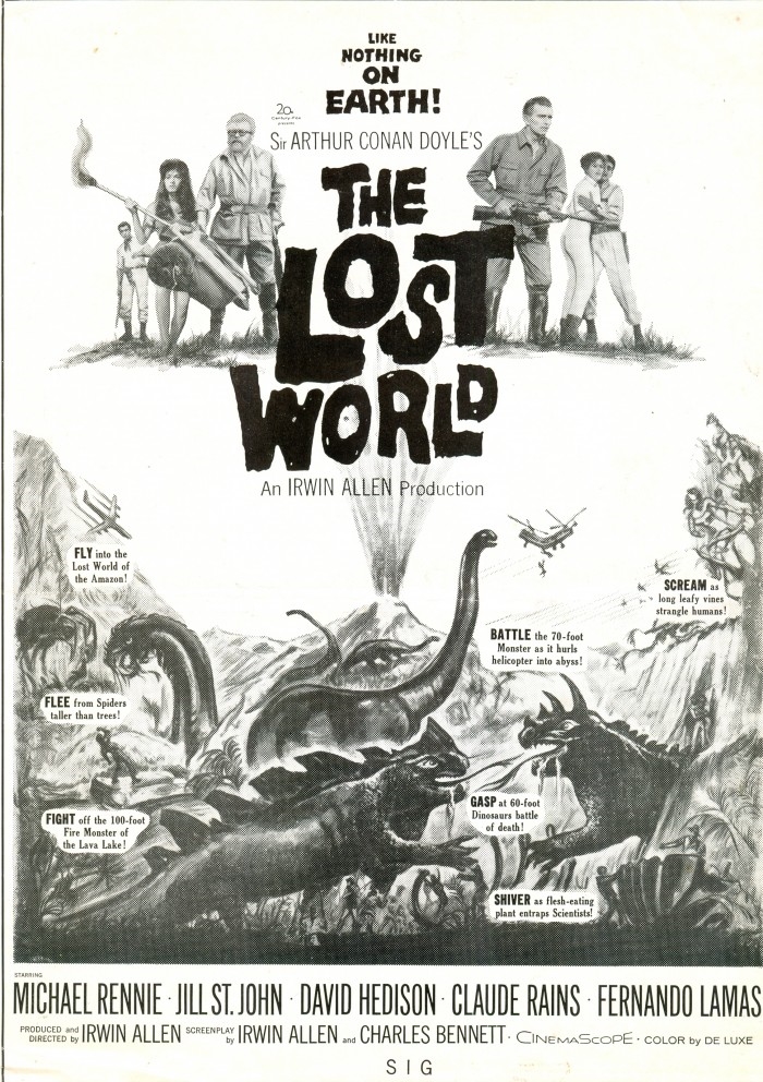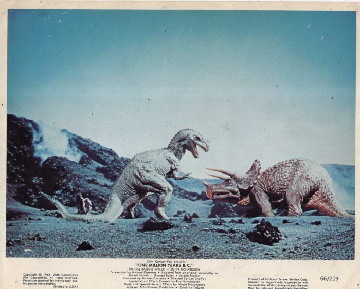 To see collectible items pertaining to some other movies featuring dinosaurs, CLICK HERE and also on the following links: One Million B.C. … Creature from the Black Lagoon … Godzilla and sequels … Japanese monsters … Reptilicus … Baby, Secret of the Lost Legend … Carnosaur. .. and my own movie Dinosaur Valley Girls. For Jurassic Park items, click here … here … and here. To see more such imagery from movies like Dinosaurus and The Animal World, including some sculptures by John Goodwin, click here. And for some posters for more movies featuring prehistoric creatures click here.