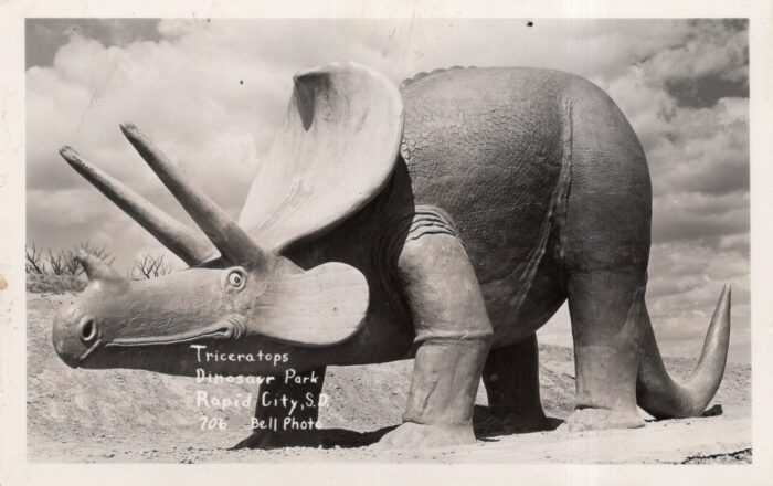 And some souvenirs showing the life-sized Triceratops at Dinosaur Park.