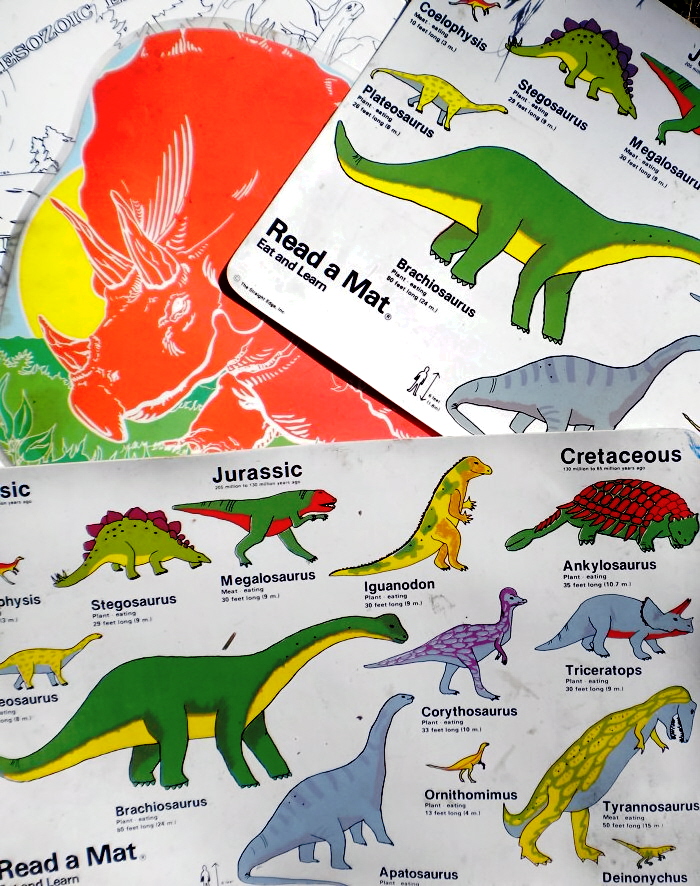 Plastic prehistoric place mats like these got a lot of use at my “Prehistoric Parties.”