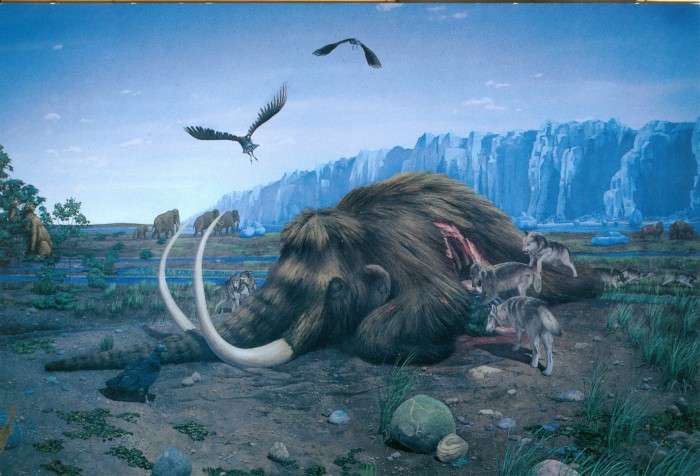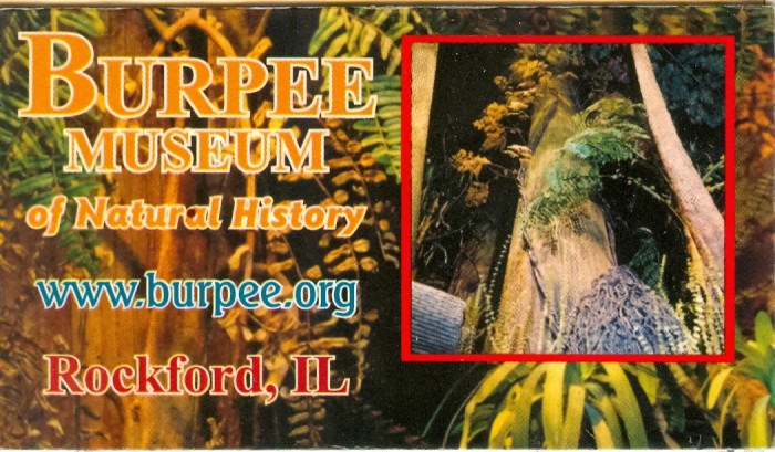 Souvenir postcard (1999) from the Burpee Museum reproduces the museum’s mural depicting “Ice-Age Illinois.”