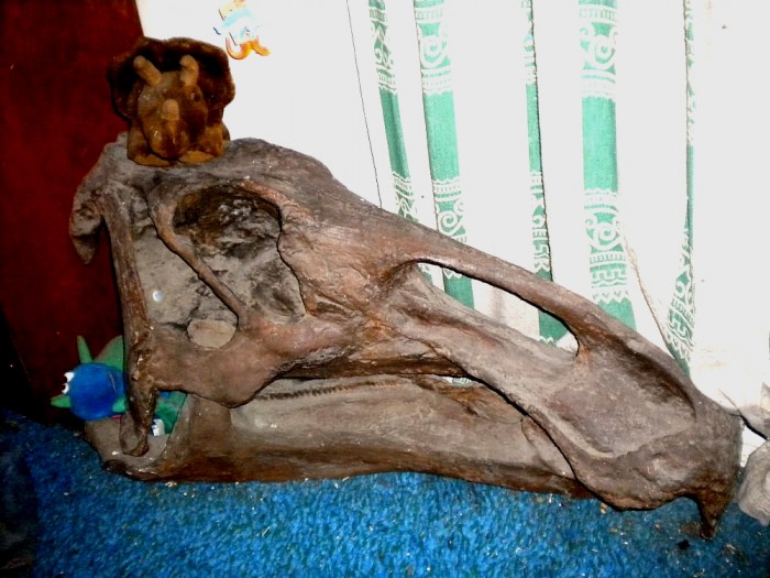 Edmontosaurus skull (castof a rare specimen including the beak, from the Natural History Museum of Los Angeles County).