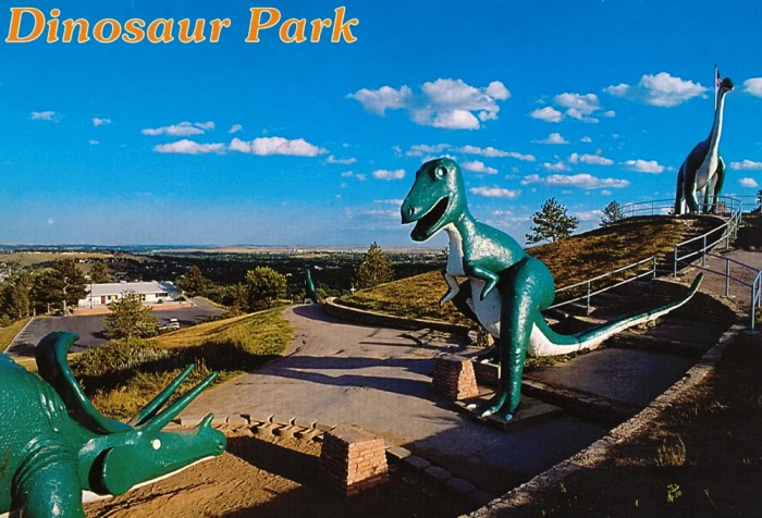 Besides sculpting life-sized dinosaurs for Dinosaur Park in Rapid City, South Dakota, Emmet A. Sullivan also made such full-scale creatures for other venues, as shown in these souvenir postcards.