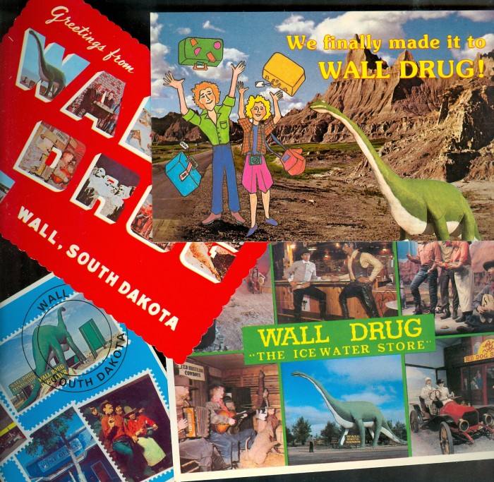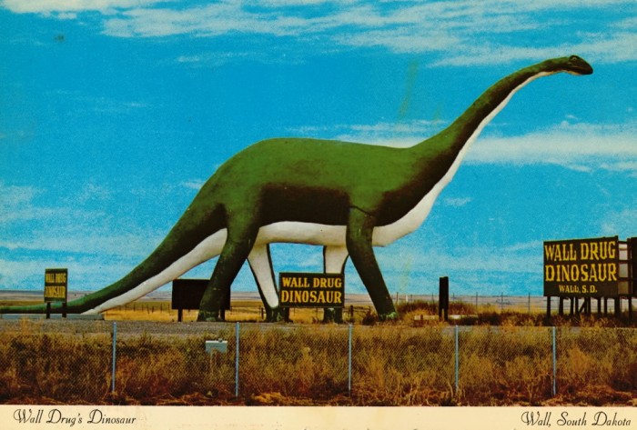 Sullivan’s famous Wall Drug dinosaur, which stands at the entrance to the South Dakota Badlands.