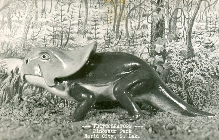 In 1955, when Dinosaur Park commissioned Sullivan to make a Protoceratops statue to reside outside its gift shop, he also made a small souvenir version that was sold at the store prior to completion of the full-size figure.