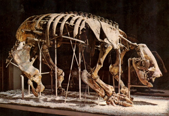 Postcard (below) from the Denver Museum of Natural History (now Denver Museum of Nature and Science) showing a Rancho La Brea group including (left) Paramylodon harlani.