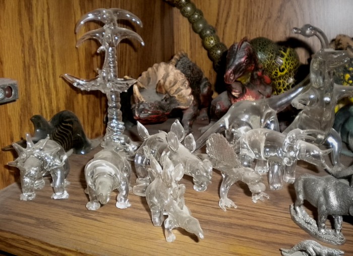 I have many glass prehistoric figures from many sources all over the USA. Here are just some of them.