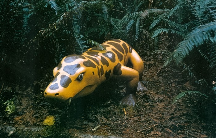 Cast of the skull of a gorgonopsid, a kind of therapsid or “mammal-like reptile.”