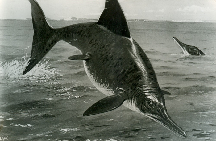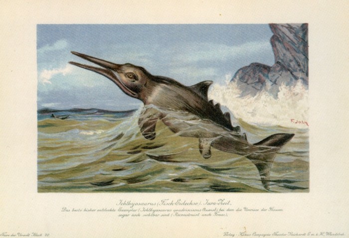 Birthday card (below left, by Zazzle, from the Linda Hall Library) featuring a very old lifestoration of Icthyosaurus by F. John.