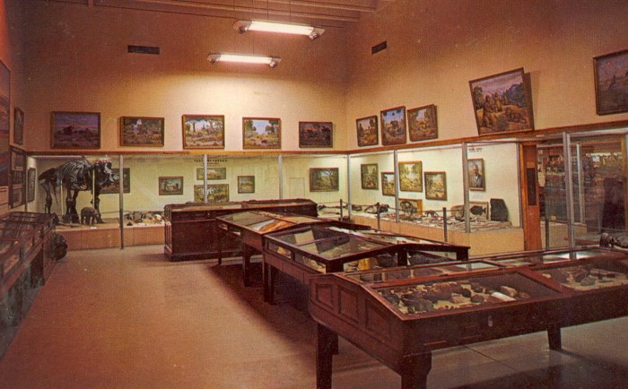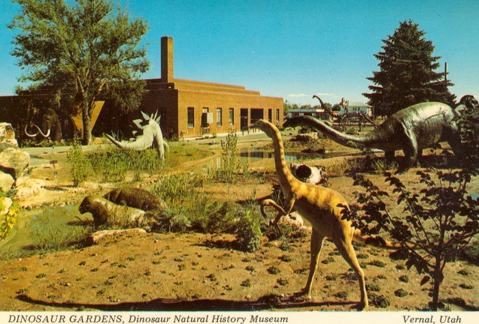 Below. souvenir post cards showing outside and inside the Field House, where “Dinosaur Jim’s” molds have been stored for posterity. Also below, one of several photographs Jim sent to me of him collecting dinosaur bones (in this photo, a scapulocoracoid of the giant sauropod Supersaurus) in Utah during the 1980s.