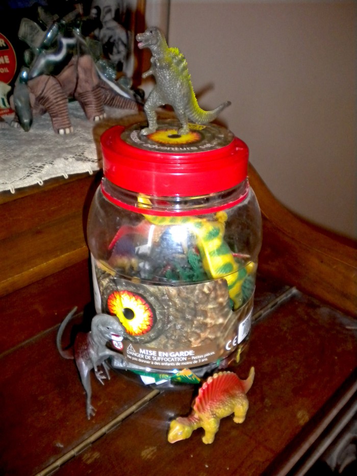 A “jar-o-dinos,” called the “Dinosaur Adventure Set” from Wild Republic (2009), made in China.