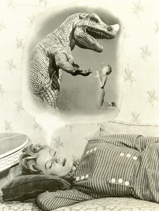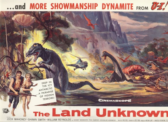 These movie prehistoric creatures also enjoyed some minor merchandising, though not necessarily “officially.” This Flashcards postcard (1984) shows someone apparently dreaming about the Ceratosaurus from The Animal World.