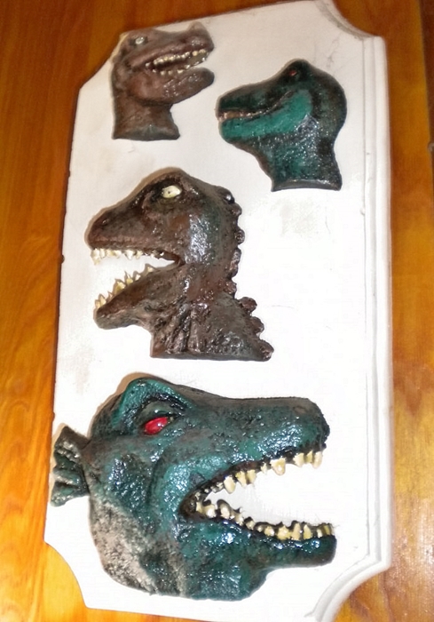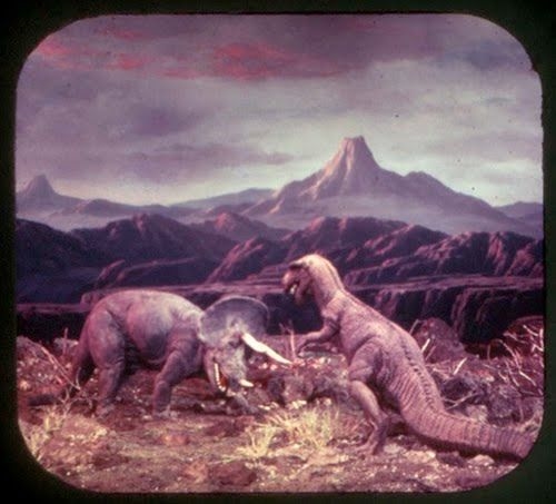 Motion-picture dinosaurs sculpted by Emmy winner John Goodwin — including prehistoric creatures from (top to bottom) The Animal World, Dinosaurus!, The Land Unknown and Gorgo.