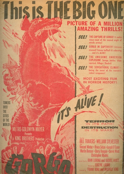 These screen dinosaurs also enjoyed having their movies adapted to comic books (below). Gorgo even proved popular enough to have its original comic-book adaptation spin-off into its own continuing series. There was also a Gorgo paperback novelization (with added sex scenes not in the movie).