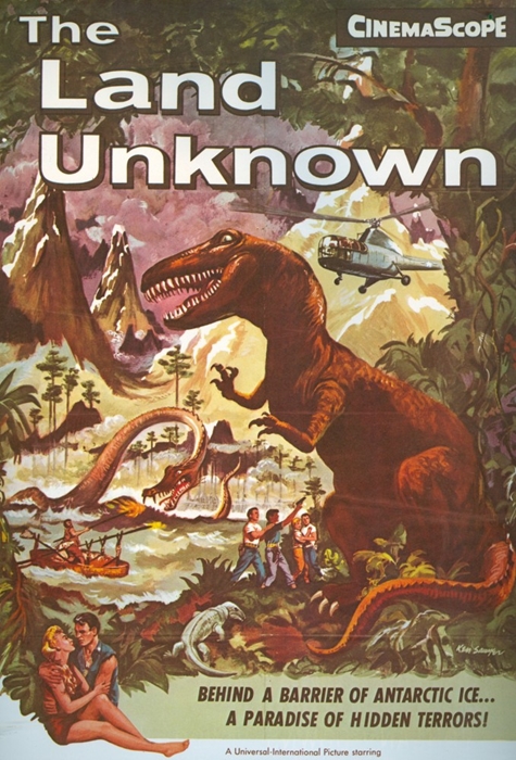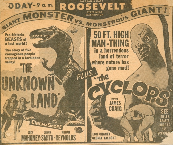 Newspaper advertisements, with the Chicago Sun-Times oddly changing the word order in the title The Land Unknown: