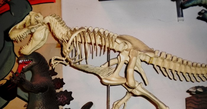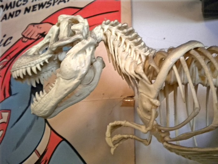 Tyrannosaurus rex skeleton model kit made by Kaiyodo, in Japan, assembled for me by Dinosaur Tracks partner Pete Von Sholly.
