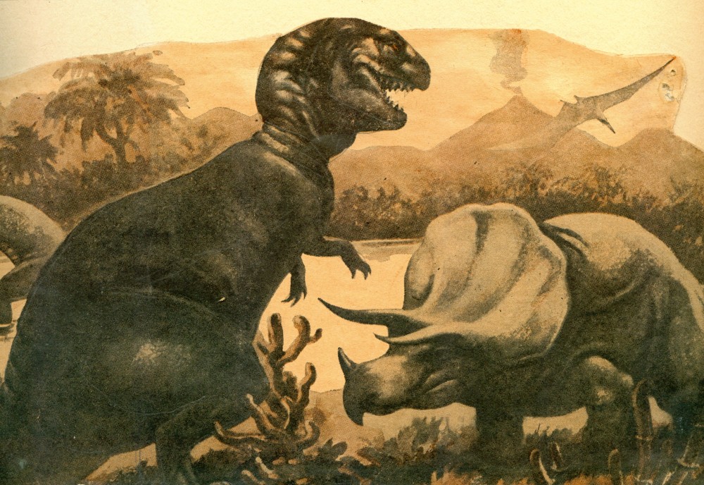 This famousTyrannosaurus painting — today known to be inaccurate in some ways — was done by artist Charles R. Knight 1906 for New York’s American Museum of Natural History under the direction of museum paleontologist and director, Professor Henry Fairfield Osborn.