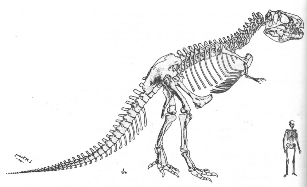 Knight based his Tyrannosaurus painting directly on this somewhat incorrect reconstruction of the dinosaur’s skeleton published earlier in 1906 by Osborn.