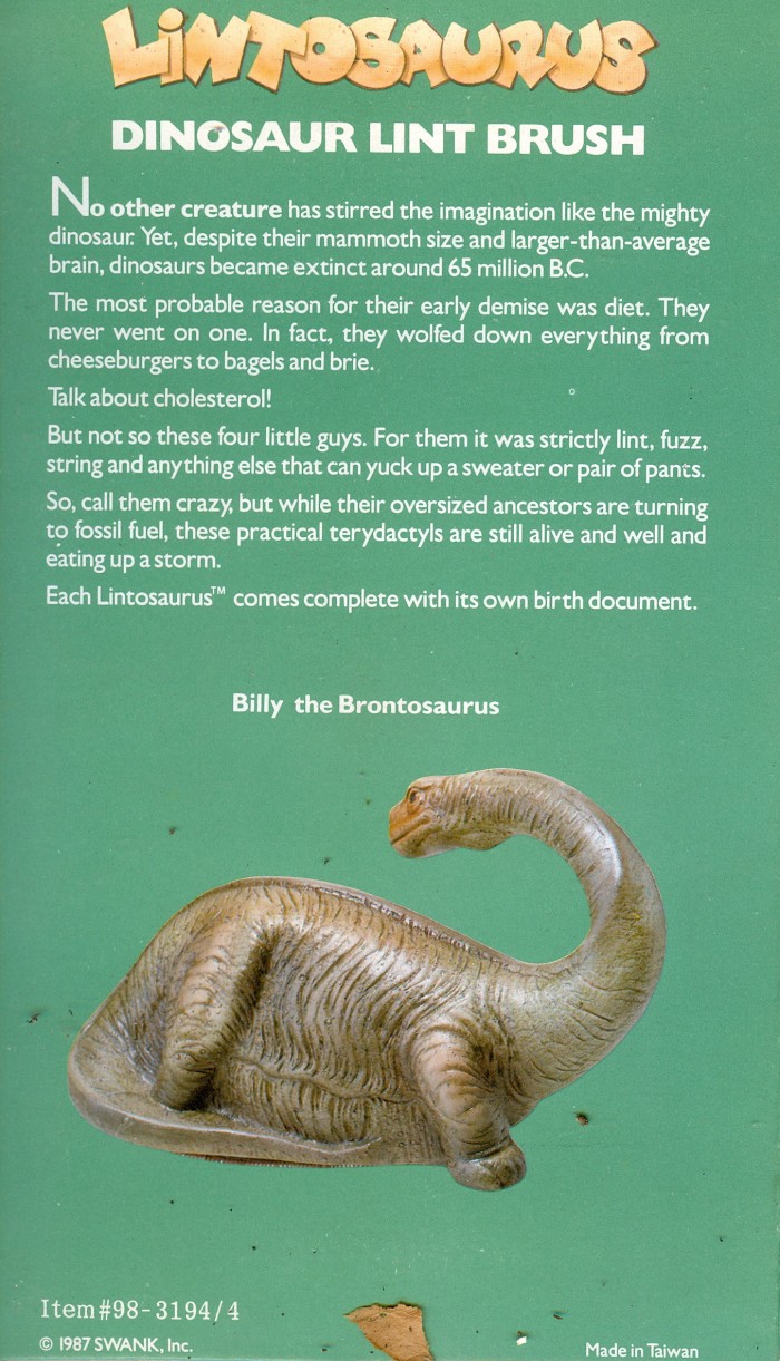 “Lintosaurus” Dinosaur Lint Brush from Swank, Inc. (1987).