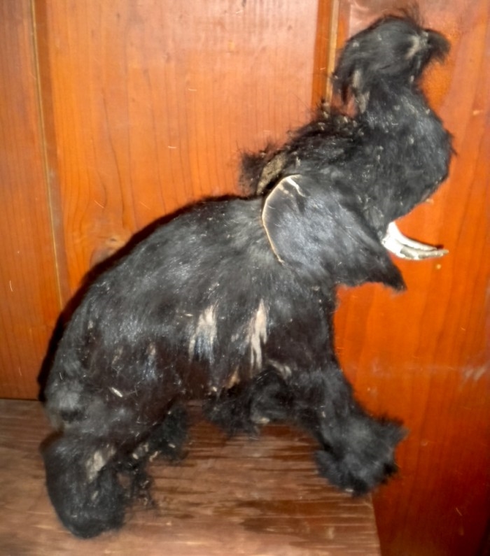 I have no information about this woolly mammoth “stuffed-animal” toy other than it seems to be quite old. I found it during the early 1980s in an off-the-freeway antique shop on a drive from California to Arizona.