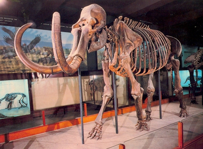 Souvenir postcards from the Provincial Museum, Victoria, B.C., Canada, showing a life-sized woolly mammoth reconstruction; and from The Field Museum of the composite skeleton of Mammuthus prigmegenius (the northern or woolly mammoth, this skeleton having been originally exhibited at the Chicago Academy of Sciences) and Charles R. Knight’s mural depicting the same animal.