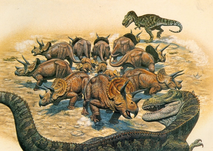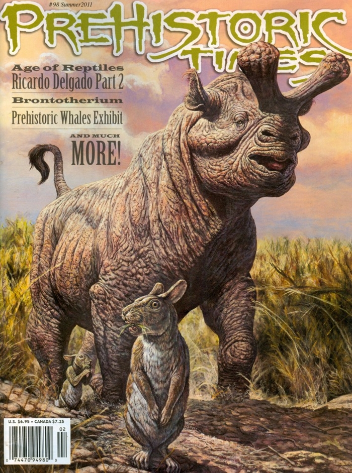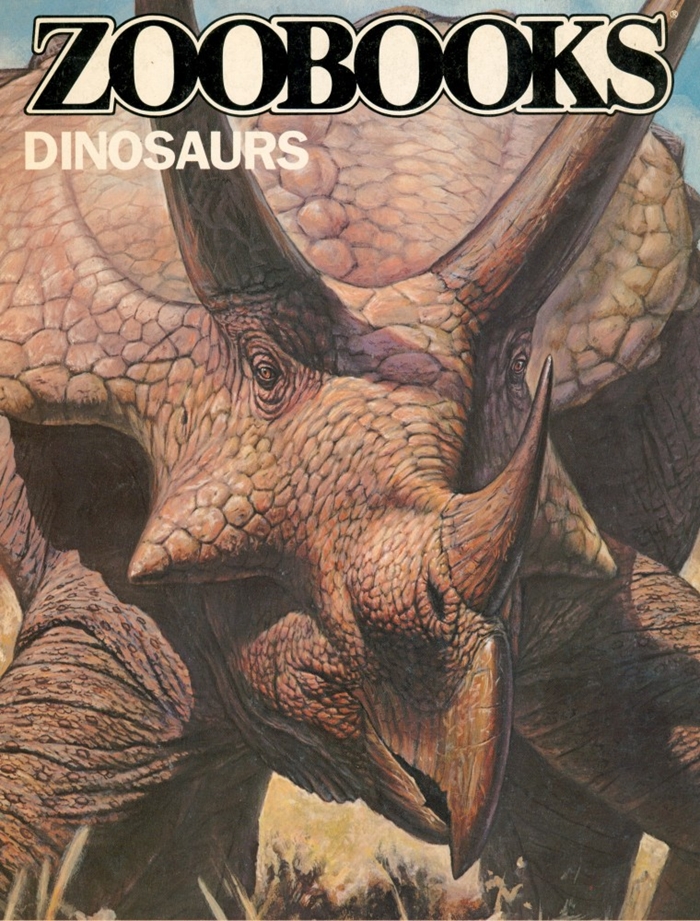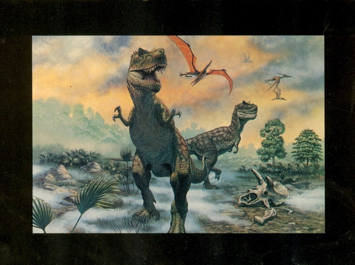 Mark’s paleoart and wildlife art has appeared in numerous books and other publications, including some of the volumes in my Dinosaurs: The Encyclopedia series of books. During the 1980s, much of Mark’s artwork appeared in the Zoobooks series, an ongoing series of publications for which he was also Cosulting Art Director. Among Mark’s pieces done for Zoobooks were these scenes, as reproduced in collectors postcards.