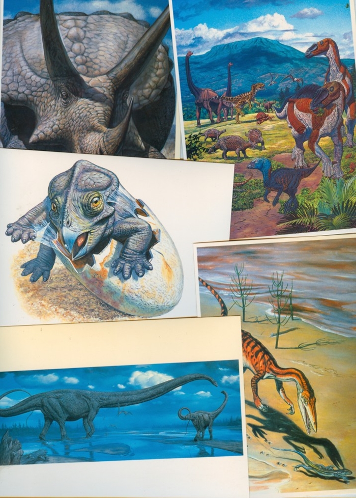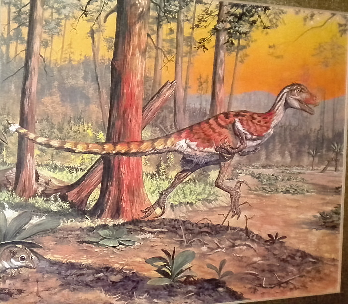 Print of a painting by Mark Hallett depicting the carnivorous dinosaur Dromaeosaurus (see also).