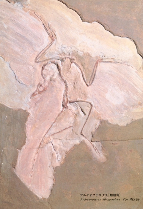 Skeleton (cast of the “Berlin specimen”) of Archaeopteryx lithographica, souvenir postcard from the National Science Museum, Tokyo.