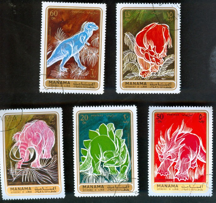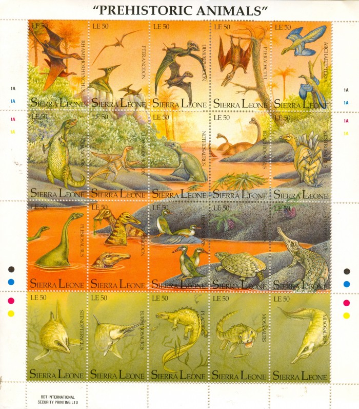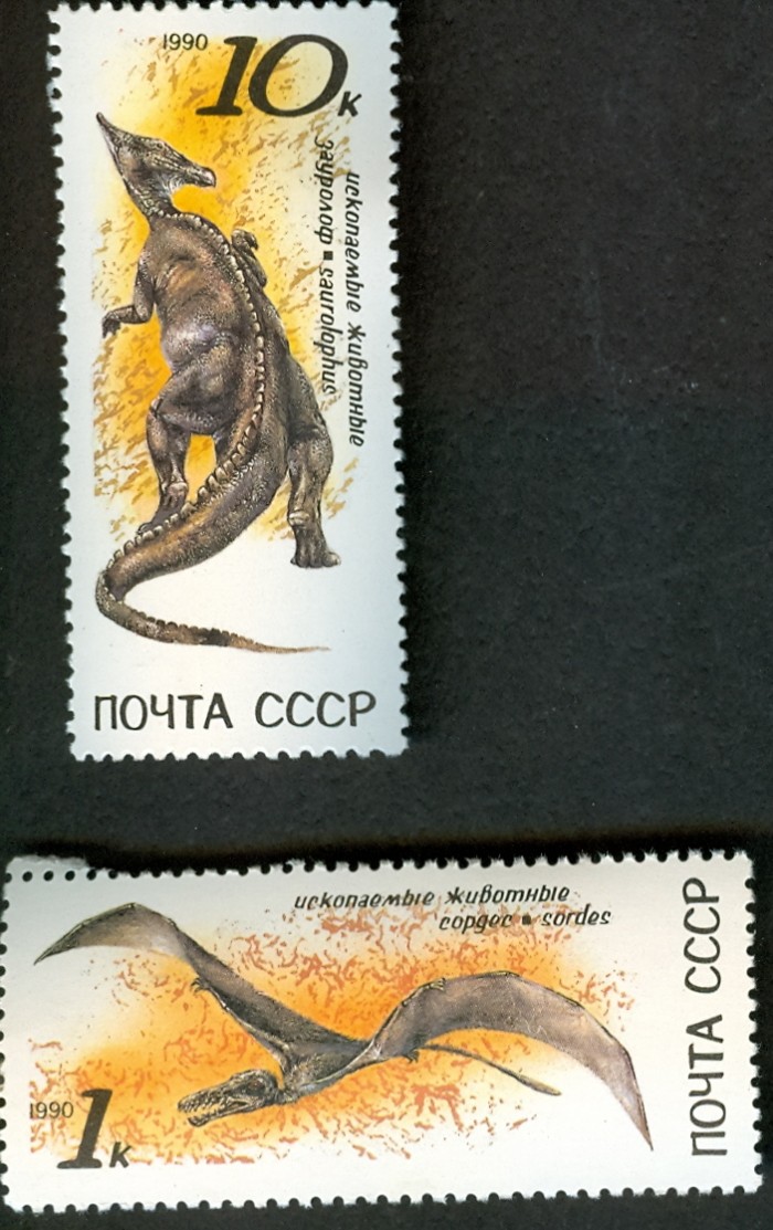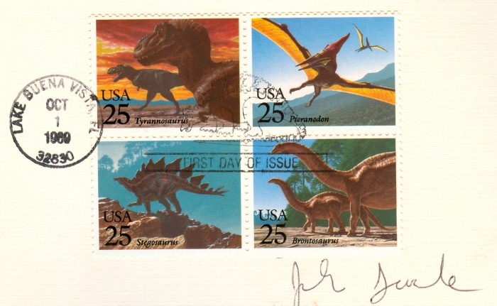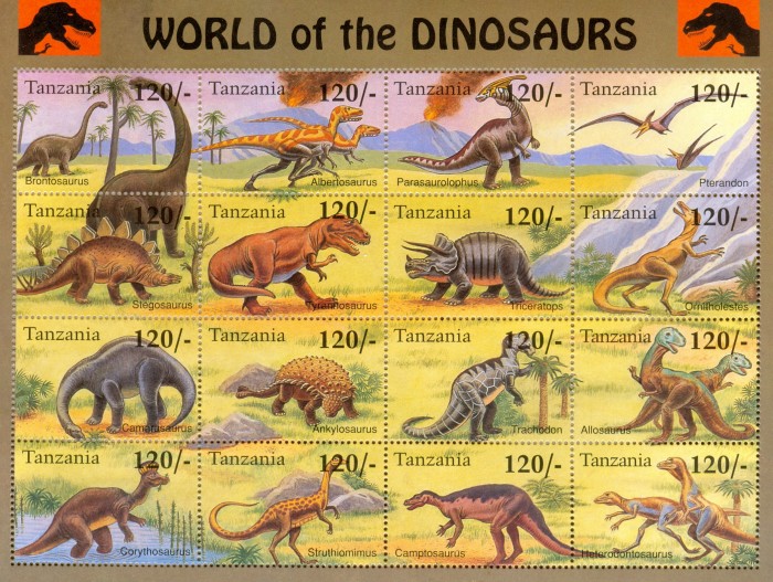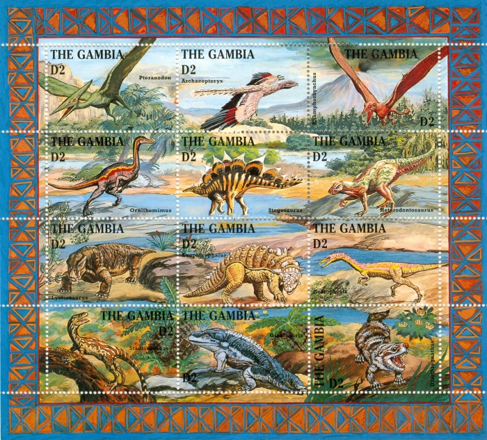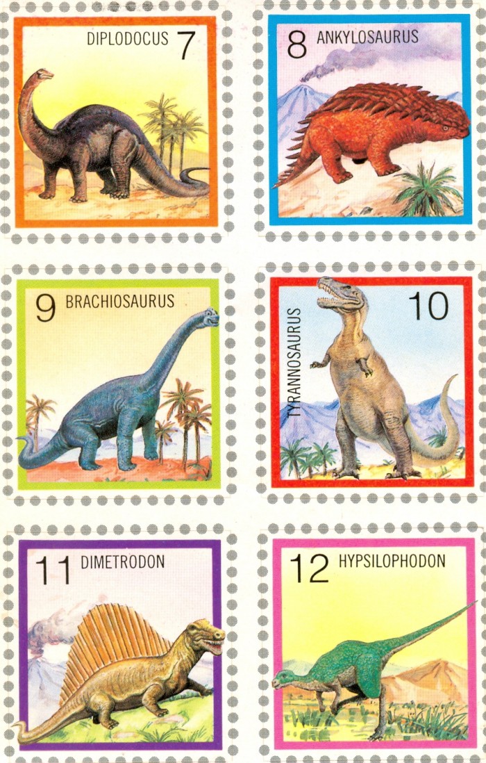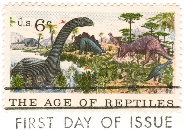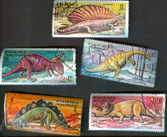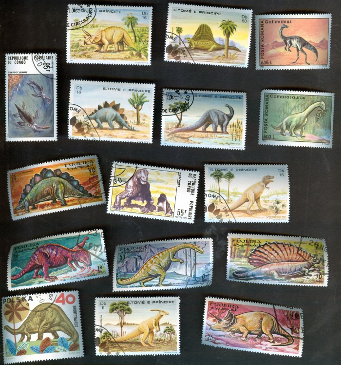 Although I’m not a postage-stamp collector, even of dinosaur-related stamps, I’ve somehow accumulate quite a few of them. Here are some examples (excluding the stamps featuring the art of James Gurney).
