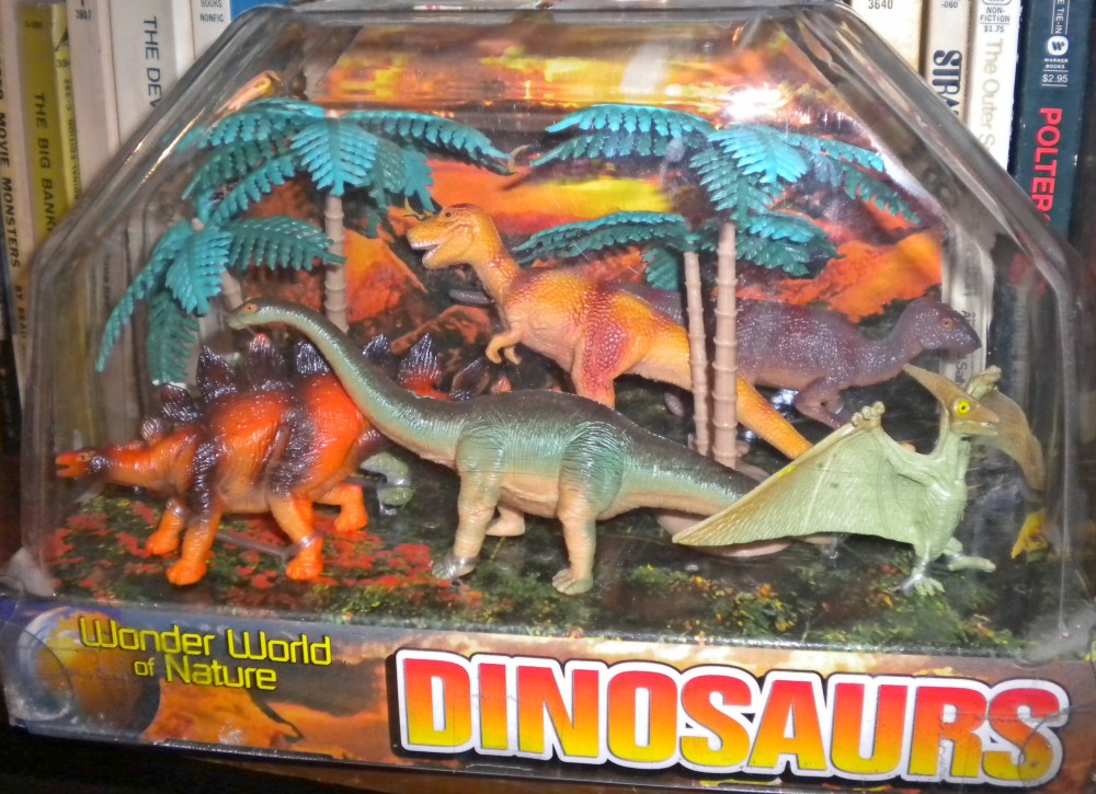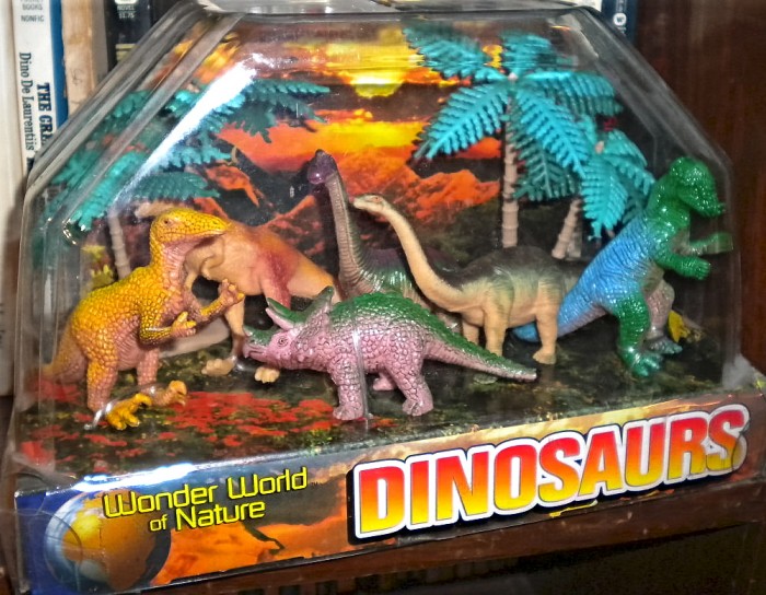 Still in their containers, more prehistoric-creatures toys.