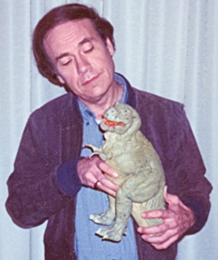 Below, Thomas R. Dickens’ animatronic Allosaurus in my movie Dinosaur Valley Girls (1996); also, the original model appearing with me and actor Conrad Brooks at the Son of Famous Monsters Convention, held at the Universal Sheraton Hotel in May, 1995.