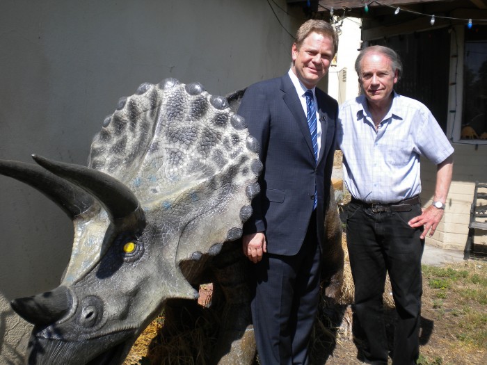 In 2012 my backyard dinosaurs were featured on a segment of the ABC network television series Nightline. The episode aired on October 3, 2010. Here I am on the day of the shoot (May 22, 2012) with TV journalist David Wright.