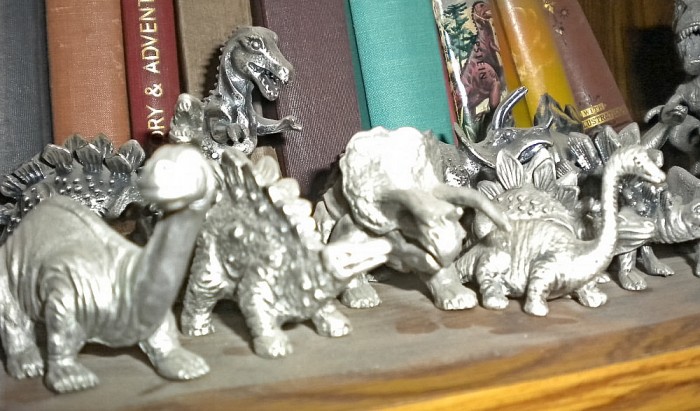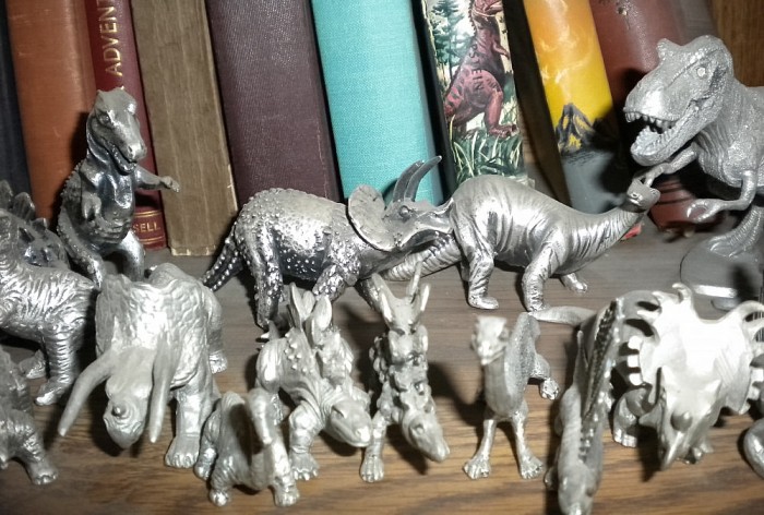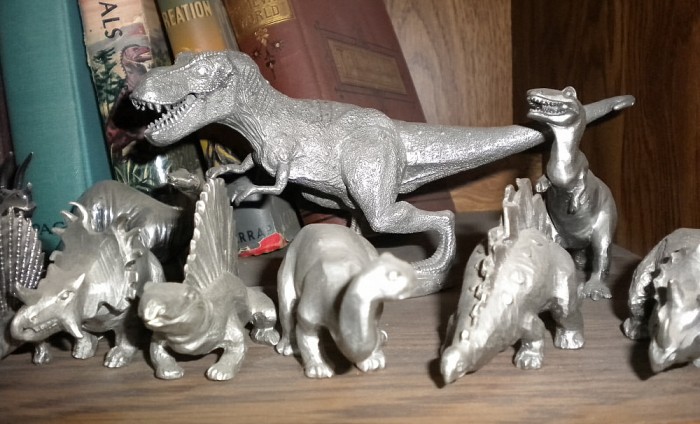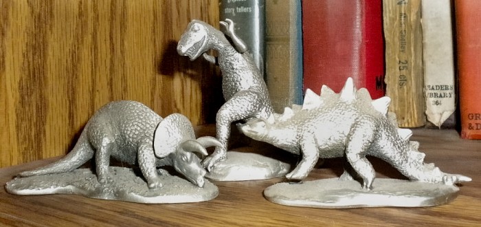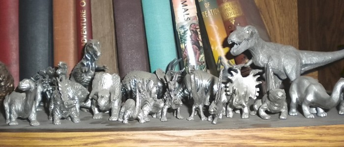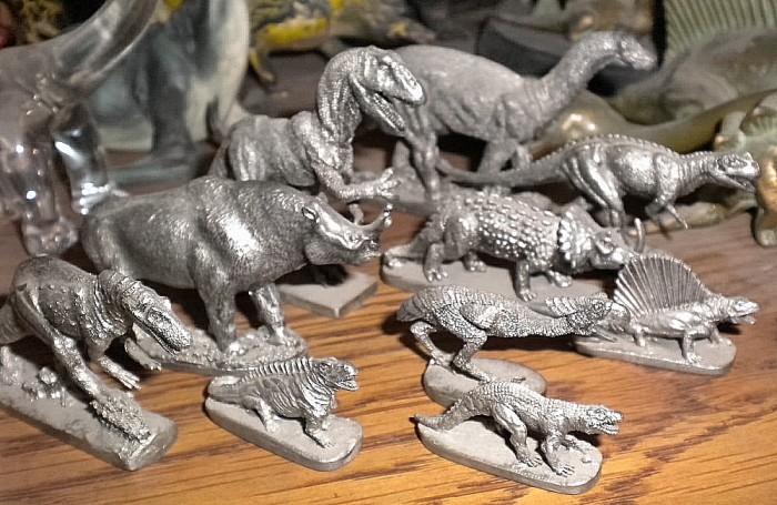 Various pewter prehistoric creatures, some of them belonging to sets, representing a number of different sources (mostly 1980s).