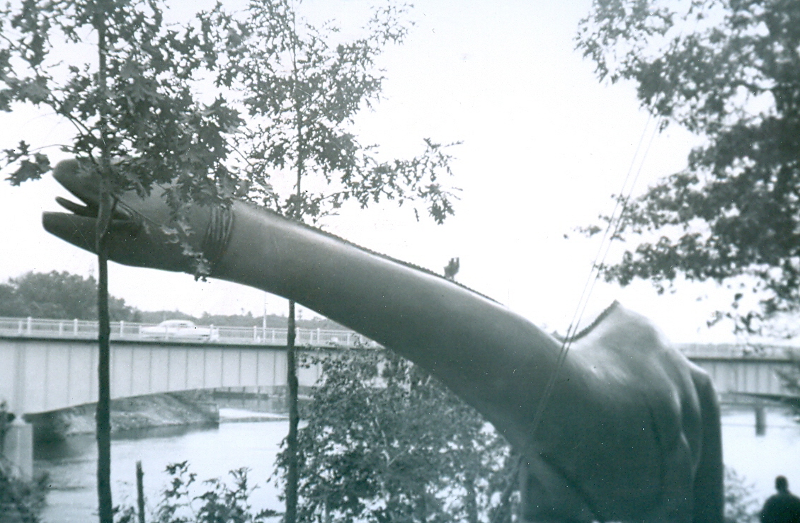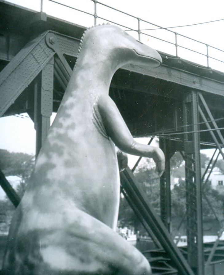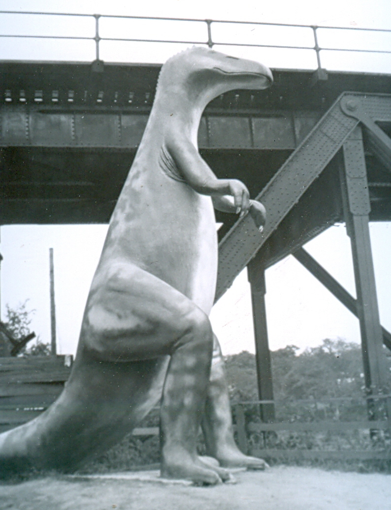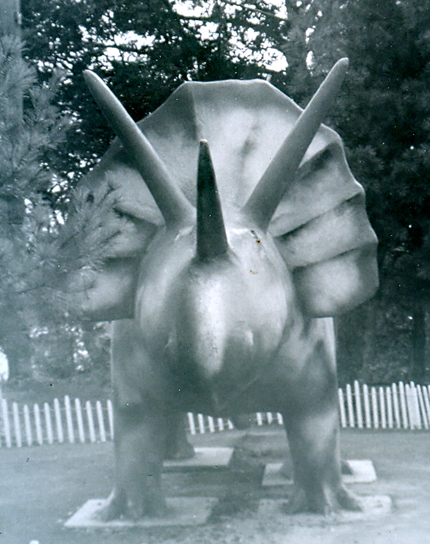 Photos snapped in the “Prehistoric Land,” a part of the “Enchanted Forest,” at the Dells, Wisconsin. (That’s Yours Truly astride the life-sized Triceratops statue.)