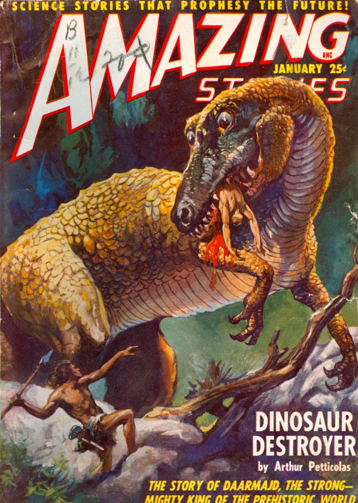 Some pulp magazines from the early 1940s to early 1950s featuring stories involving dinosaurs and other prehistoric creatures.