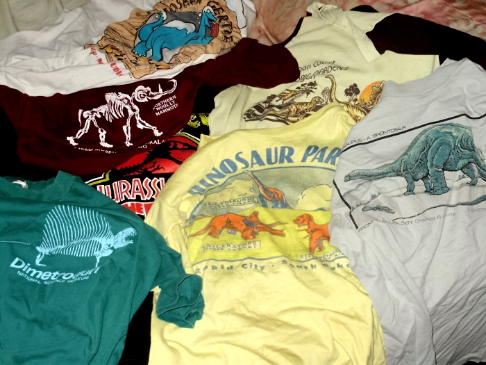 I have a lot of T-shirts with pictures of dinosaurs and other prehistoric creatures. They came from museums, universities, “prehistoric parks,” they commeorate paleo-related events, promote movies, TV shows and toys, and so on and so forth.