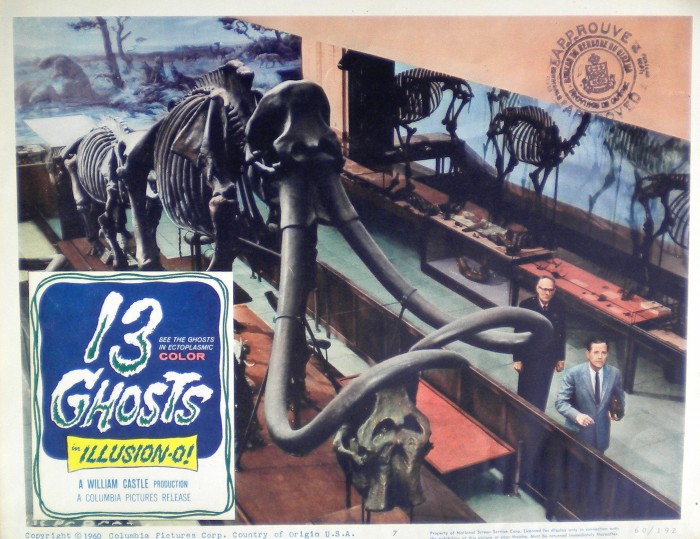 The Rancho La Brea fossil collection, as formely exhibited at the Natural History Museum of Los Angeles County, seen in this lobby card from the movie 13 Ghosts (1960).
