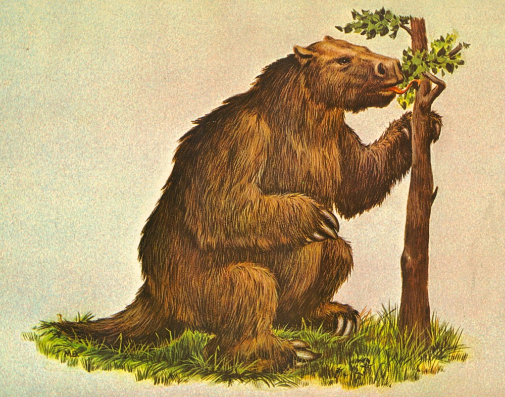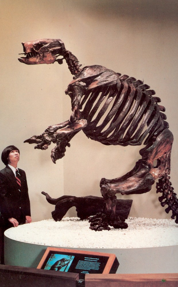 Paramylodon harlani skeleton and life restoration.